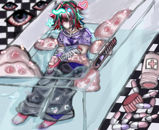 Hi there! Call me Mangle, I'm an artist from the US. I like to draw digitally, and I enjoy yamikawaii and scene/2000s aesthetics which I often incorporate into my artwork. I am mentally ill and find art as an outlet for my feelings as well. I take commissions currently, and links are below! this page will be updated when I make more artwork, as well as my social media.