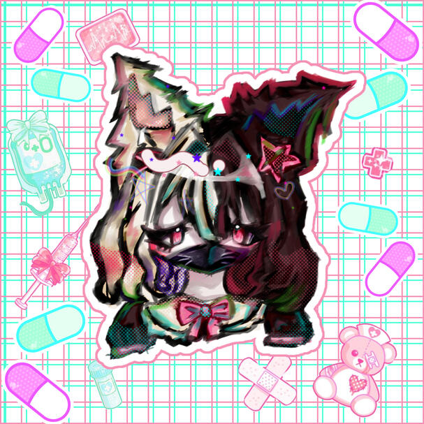 Hi there! Call me Mangle, I'm an artist from the US. I like to draw digitally, and I enjoy yamikawaii and scene/2000s aesthetics which I often incorporate into my artwork. I am mentally ill and find art as an outlet for my feelings as well. I take commissions currently, and links are below! this page will be updated when I make more artwork, as well as my social media.